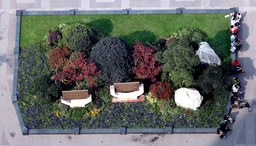 據(jù)李壽仁介紹,保留下來的大樹主要有兩種處理手法:像天竺桂、黃葛樹等幾十年的老樹,在周圍搭建木質(zhì)平臺,既可以保護大樹,又可供游人休息;一些香樟、桂花、銀杏等,則用森林綠整石圍邊,搭配草皮、三色堇、球類、日本紅楓等植物,采用花境的布置手法,建成一個個面積大小不一的花壇,營造出四時風(fēng)光各不同的江南園林意境。而平滑、細(xì)膩的森林綠整石,既是景觀的一部分,又是漂亮的坐凳,兼顧了景觀與實用的功能。