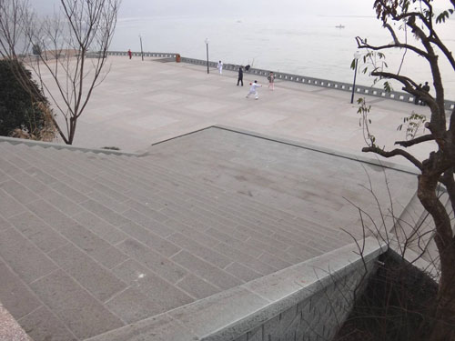館驛嘴廣場不僅要成為城市的一處標(biāo)志性景觀,更要能經(jīng)得起洪水的考驗,這就對廣場的功能和鋪裝材料提出了更高的要求。