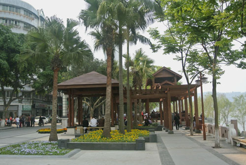 經(jīng)過近半年的不懈努力,如今,這里的景觀效果已初見成效,生態(tài)自然的園林美景,濃郁厚重的人文氣息,使這里再次成為酒城瀘州的一處標(biāo)志性景觀,成為廣大市民的一處休閑樂園。站在高處的建筑上往下看,新建成的館驛嘴廣場猶如一艘動感十足的航船,迎風(fēng)破浪,向著江心直行而去;而廣場上無數(shù)的游人,則如船上的乘客,悠閑愜意地欣賞著江中的美景。