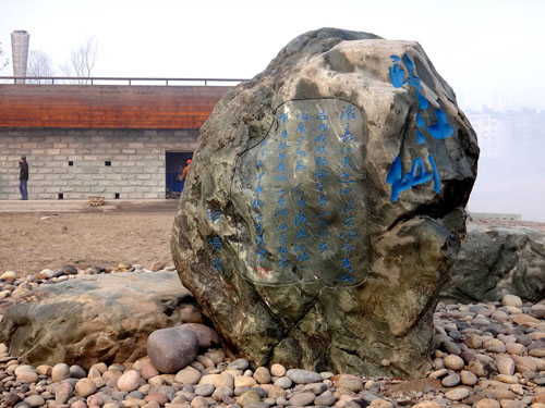 在臨近東門口廣場的地方,豎立著一塊高4米的整石無字碑,粗糙的碑身上下沒有一個文字,只有鐫刻的一行阿拉伯?dāng)?shù)字“2012.7.23”,以及記錄洪水水位高度的標(biāo)刻。“碑身的頂部伏有一只惟妙惟肖的犀牛,取名為‘犀牛鎮(zhèn)河妖’,現(xiàn)在犀牛還沒做上去。”李壽仁說,“這塊無字石碑是讓瀘州人民永遠(yuǎn)銘記著2012年7月23日,洪災(zāi)肆虐酒城,洪水水位達(dá)到瀘州歷史最高水位的日子。”一塊無字碑,勝過千言萬語的表述,卻讓人們銘記一段歷史。作為無字碑的原創(chuàng)者,李壽仁希望借此表達(dá)酒城人民希望今后洪水不再肆虐、家人永遠(yuǎn)平安的祈盼。再仔細(xì)觀察才發(fā)現(xiàn),這塊石碑的四個角、四個面的處理方式和紋路都各不相同。看似無字,實則意蘊深遠(yuǎn),如此創(chuàng)意,讓人暗暗稱妙。