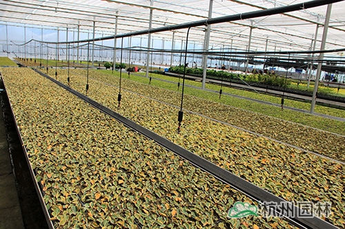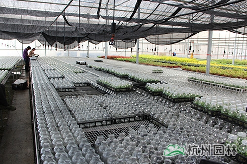 杭州畫境種業有限公司徑山基地基礎建設已于2014年基本完工,包括蔭棚地塊建設、基質攪拌、辦公室、倉庫等,其中,新建的溫室大棚已全面投入使用,由公司自行組培的16萬棵火焰南天竹也進入了煉苗階段,畫境種業的員工和工人們一起,通力合作,爭取以最高的效率完成煉苗工作,總經理黃民強也親臨現場,給大家指導與支持。在領導的關心下,大家信心倍增,計劃在一周內完成全部煉苗工作。火焰南天竹,是公司組培研發生產的新品種,它植株低矮,枝葉密集;幼葉及冬季葉亮紅色至紫紅色,初秋葉變紅色,比南天竹紅色葉深,變色期早;喜溫暖濕潤、通風良好的半陰環境,較耐寒,生長較快,在園林景觀中的應用比較廣泛。