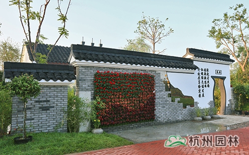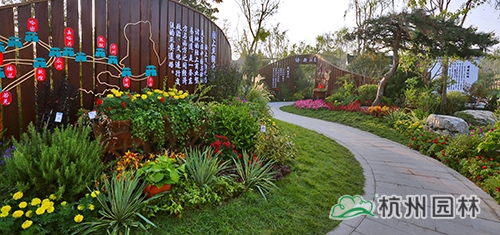 考慮到銀川的干燥氣候,垂直綠化墻植物的保濕成為難題。“浙江園”垂直綠化墻以無紡布為墻體材料,使用保濕性強(qiáng)的基質(zhì),優(yōu)選植物種類,同時搭配滴灌系統(tǒng),保證了綠化墻鮮花擁簇的景象。展園內(nèi)的垂直綠化墻設(shè)計簡潔、曲線優(yōu)美,與以錢塘江文化為主題的背景墻相互映襯,共同展現(xiàn)了新時期浙江園林景觀的不斷發(fā)展與創(chuàng)新。
