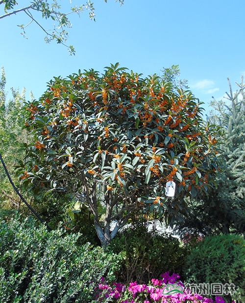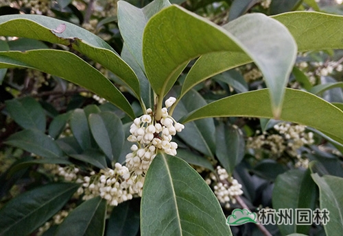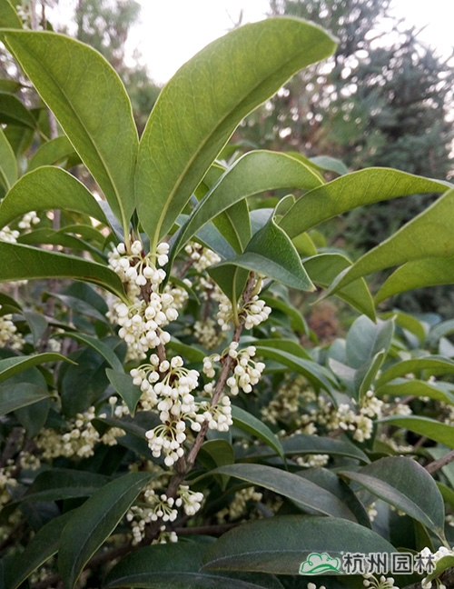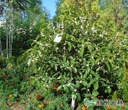 “浙江園”里應用的桂花品種以丹桂和銀桂為主,共計50余棵,包括大喬木和小球類。為保證開園期間的觀賞效果,這些桂花被提前運送至銀川,利用當地的低溫環境誘使其完成花芽分化,終于在九博會開園時營造出了桂花滿樹、滿園飄香的氛圍。