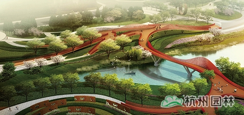 樂活園藝主題區:以家庭園藝花園為主,是公園的圩田濕地體驗中心,水道如巷,河汊如網的圩田農藝景觀,呈現出田園牧歌般的意境。包含飄帶走廊、水蕩花田等景點。