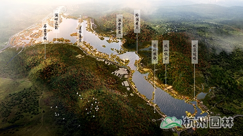本次提升設計范圍包括整個湘湖水域、環湖綠地以及東西岸山脊間的山體。