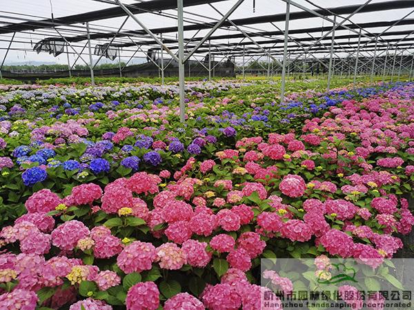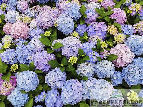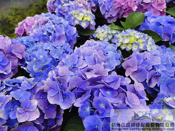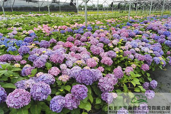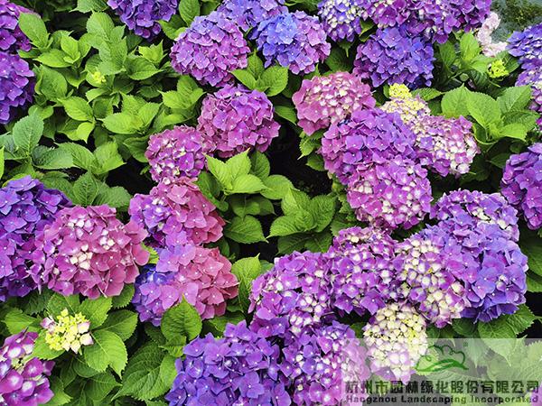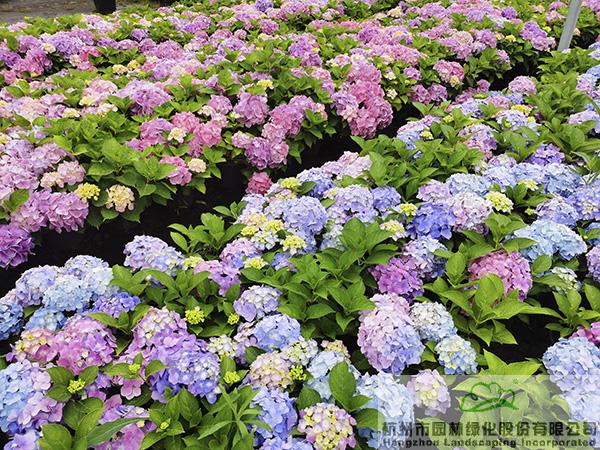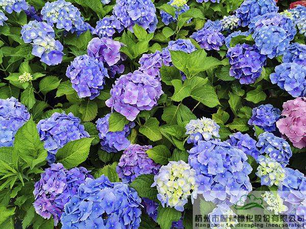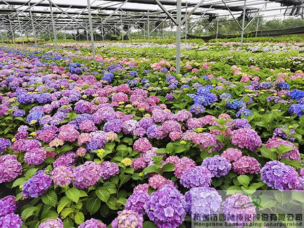 五、六月份,走進杭州畫境種業有限公司徑山基地,依然是一片忙碌的景象,工人們正在忙著苗圃的管理,客戶們正在忙著看苗選苗。在滿眼的綠色中,獨有一片姹紫嫣紅瞬間吸引了人的目光。走近一看,原來是盛開的繡球。琳瑯滿目的品種,繽紛絢麗的色彩,在夏日的陽光下恣意綻放,開出一片繁花似錦,開出一場花海盛宴。話不多說,先看一波美圖吧。