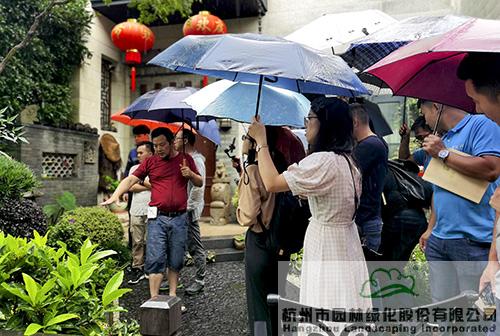 分享會采取現場觀摩的形式,在位于杭州文二西路香洲里的樂軒和可園,杭州市園林綠化股份有限公司常務副總裁、花園分會副會長李壽仁帶領大家領略了兩個庭院的不同風光,并從庭院營建中的地面鋪裝、植物選擇、空間布局、小品布置、人文情懷、細節處理等方面作了詳細闡述。