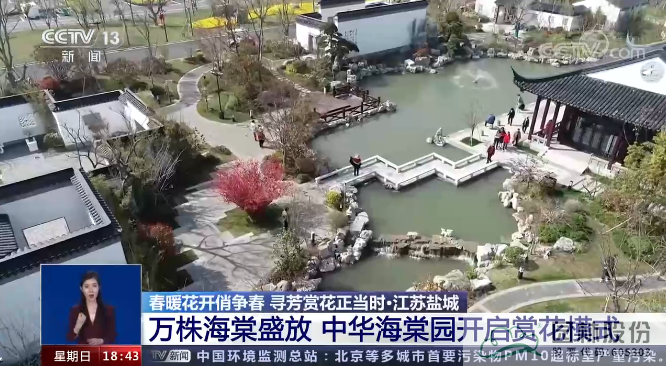 “春暖花開(kāi)俏爭(zhēng)春,尋芳賞花正當(dāng)時(shí)。”3月28日,央視CCTV13新聞?lì)l道《共同關(guān)注》及《東方時(shí)空》兩個(gè)欄目,先后在熱播時(shí)段,報(bào)道江蘇鹽城中華海棠園內(nèi)海棠花盛開(kāi)的美景,為當(dāng)?shù)靥ご郝糜巍板\上添花”!
