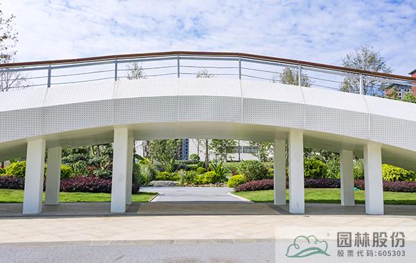 一座人行天橋,將公園景觀一分為二,動靜結合,相得益彰。既劃分空間,又是公園景觀的一部分。