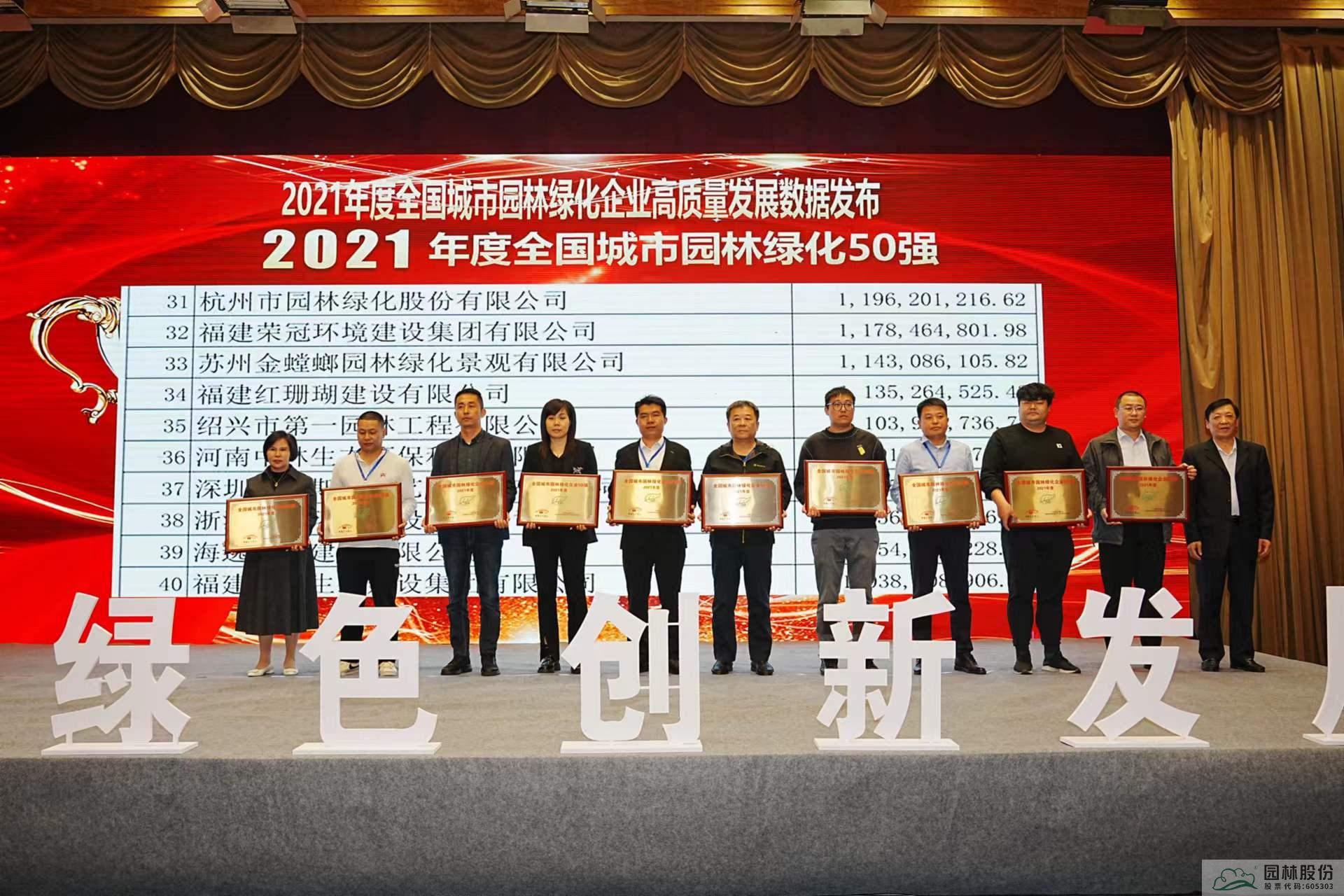 4月26日,2023園林產業高質量發展論壇暨2021年度全國城市園林綠化企業50強峰會在山東泰安隆重召開,杭州市園林綠化股份有限公司連續多年榜上有名,本年度排名全國前31名。