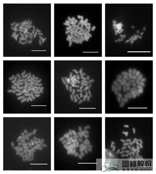 2019年在上海市科委重大攻關(guān)項目《八仙花高質(zhì)量苗木標準化繁育與栽培技術(shù)》(編號:19DZ1203503)的資助下,杭州市園林綠化股份有限公司浙江園林資源與環(huán)境技術(shù)研究院開展了江南地區(qū)繡球新品種的專項培育,項目通過對國內(nèi)外引進的92種繡球種和品種進行綜合評價,再根據(jù)染色體分析,篩選出21個具有觀賞特色或新枝開花或高抗性的資源作為親本,包括14個大葉繡球品種、3個喬木繡球品種、3個圓錐繡球品種、中國繡球原種和蠟蓮繡球原種。
