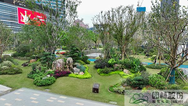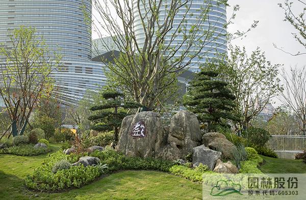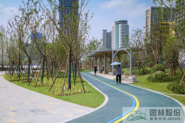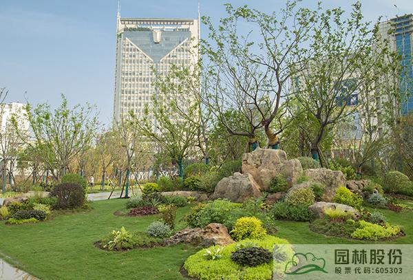 項目注重新優植物的應用,行道樹采用娜塔莉、中心廣場通道兩側綠地種植美國紅楓、中心廣場內種植銀杏樹等色葉樹種。翠綠的枝葉相互掩映,樹下設有林蔭座凳,夏季可有“大樹成蔭”之景,市民可觀賞可乘涼,充分感受自然野趣。主道路行道樹為染井吉野等開花與色葉樹種,周邊綠地采用混合花境置石結合的配置手法,時花、低矮花灌木與景石自然搭配,并大量應用了公司自主研發的繡球新品種,營造景觀豐富的長效花境景觀。