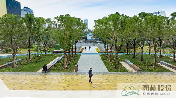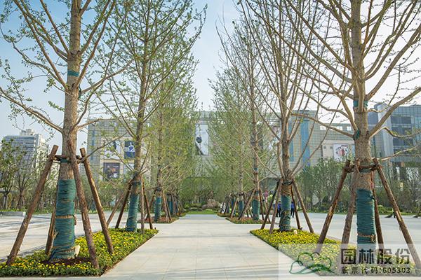 作為徐州城市中心商圈軸線上的一塊“綠寶石”,彭城廣場復綠工程項目整體景觀以大樹骨架群落為主,應用的骨架樹木近500棵,營造出大樹成蔭、花境迎賓的效果。