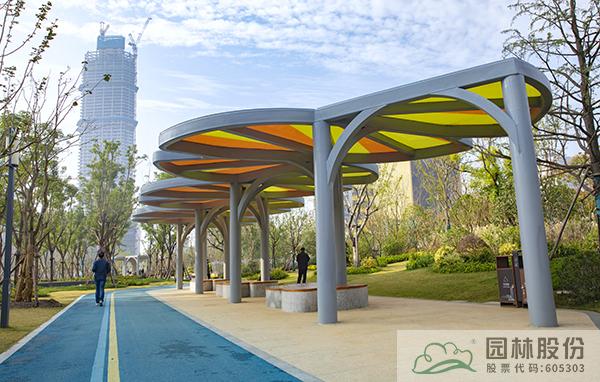 在跑道沿途,有4處可供歇息的銀杏廊庭(時光驛站),廊庭頂部設計為黃褐色的銀杏葉交錯重疊,充滿自然生趣,讓銀杏“市樹”文化擁有了更具體的功用。