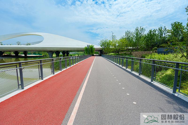 城市綠道通過鋪裝材質區分出騎行道和跑步道。騎行區域采取瀝青材質,提高耐久度和使用壽命,有效控制成本造價。跑步道區域采用EPDM塑膠顆粒面層,提高使用舒適度,采取靚麗的色彩與騎行區域進行區分。結合人才驛站設置瞭望臺,游人在此可小憩補充體力,也可登高俯瞰河道景觀。造型獨特的驛站和瞭望臺也是河道上的一處風景。
