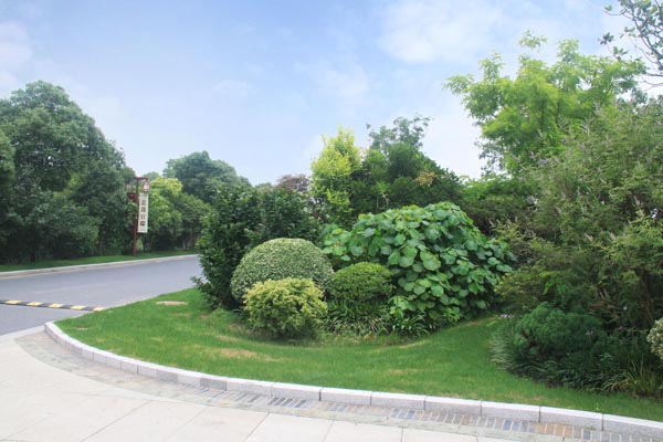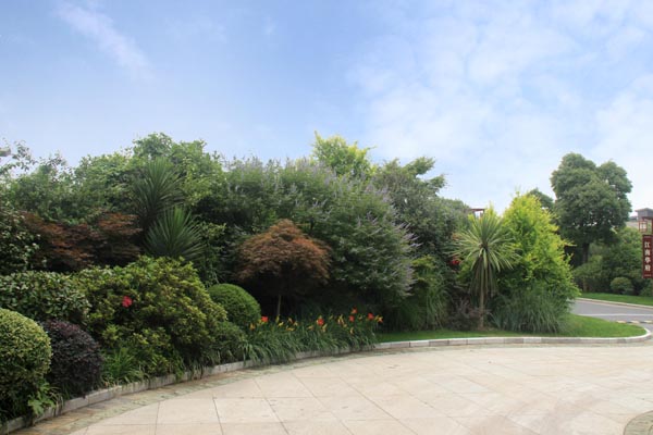 別墅小區公共景觀的植物配置不但要與建筑、環境相協調,還要做到多層次、多樣化、多季相,并創造出植被生態景觀及其圍合空間的豐富多彩,達到人與環境的和諧統一,因此,植物的選擇與配置顯得尤為重要。據徐建良介紹,工程中的植物選擇與配置遵循三個原則:第一,根據地域特征,考慮季相變化;第二,根據建筑空間的大小、遠近,近景或端景配置觀賞性強的品種,遠景的植物配置則充分考慮空間天際線及建筑物之間的關系;第三,充分考慮林下植物和孤賞植物布置的各個方面,突出自然生長特征和人工修整造型植物之間的反差對比。以此為指導,上層空間選擇了香樟、合歡、玉蘭、樸樹、銀杏等大規格喬木,中下層空間種植紅葉石楠、枸骨、杜鵑、鋪地柏、火棘等花灌木和地被,再配以微地形的處理,整個植物造景的林冠線、林緣線及空間層次別具特色,從而使得別墅區的整體景觀層次分明、色彩豐富,既在統一中富于變化,每個區域又自成風格。特別是每個路口的花境營造,更為小區增添一抹亮色。